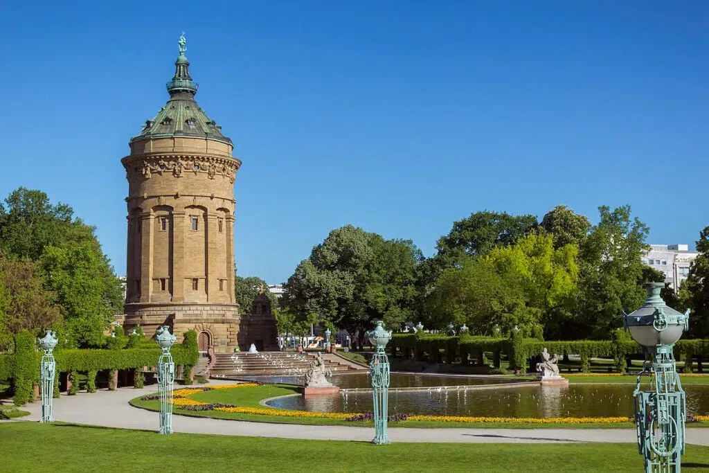 The Roman water tower is the landmark of the city of Mannheim. It stands 60 meters high in the middle of Friedrichsplatz and is the largest Art Nouveau structure in Germany. It was built in the 1880s and became a listed building in 1987. The Christmas market is held here in winter and the fountains are illuminated in the evening during the summer months. If you take a walk here, you will be surprised by water fountains and sandstone figures from Greek mythology.